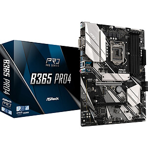 La carte mère ASRock B365M Pro4 est faite pour accueillir les processeurs Intel Core de 8ème génération et 9ème génération. Basée sur le chipset Intel B365 Express, elle servira de base à votre PC Gaming ou multimédia équipé d'un processeur performant et doté d'une finition Asrock professionnelle.