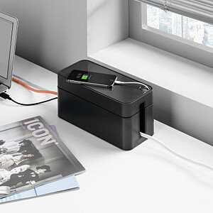 Le boîtier range-câbles Durable Cavoline BOX S offre une solution pratique pour dissimuler vos câbles et une multiprise à 3 prises. Son large volume permet une installation simple et confortable tandis que les fentes de sorties assurent une ventilation optimale.