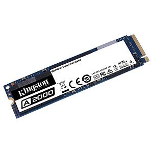 Le disque SSD A2000 NVMe PCIe de Kingston est une solution de stockage à partir de 250 Go aux performances impressionnantes avec des vitesses de lecture allant jusqu'à 2 200 Mo/s et 2 200 Mo/s en écriture suivant les modèles.